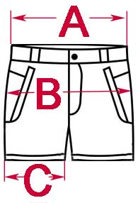Size | Waist (A) | Hips (B) | Leg width (C) |